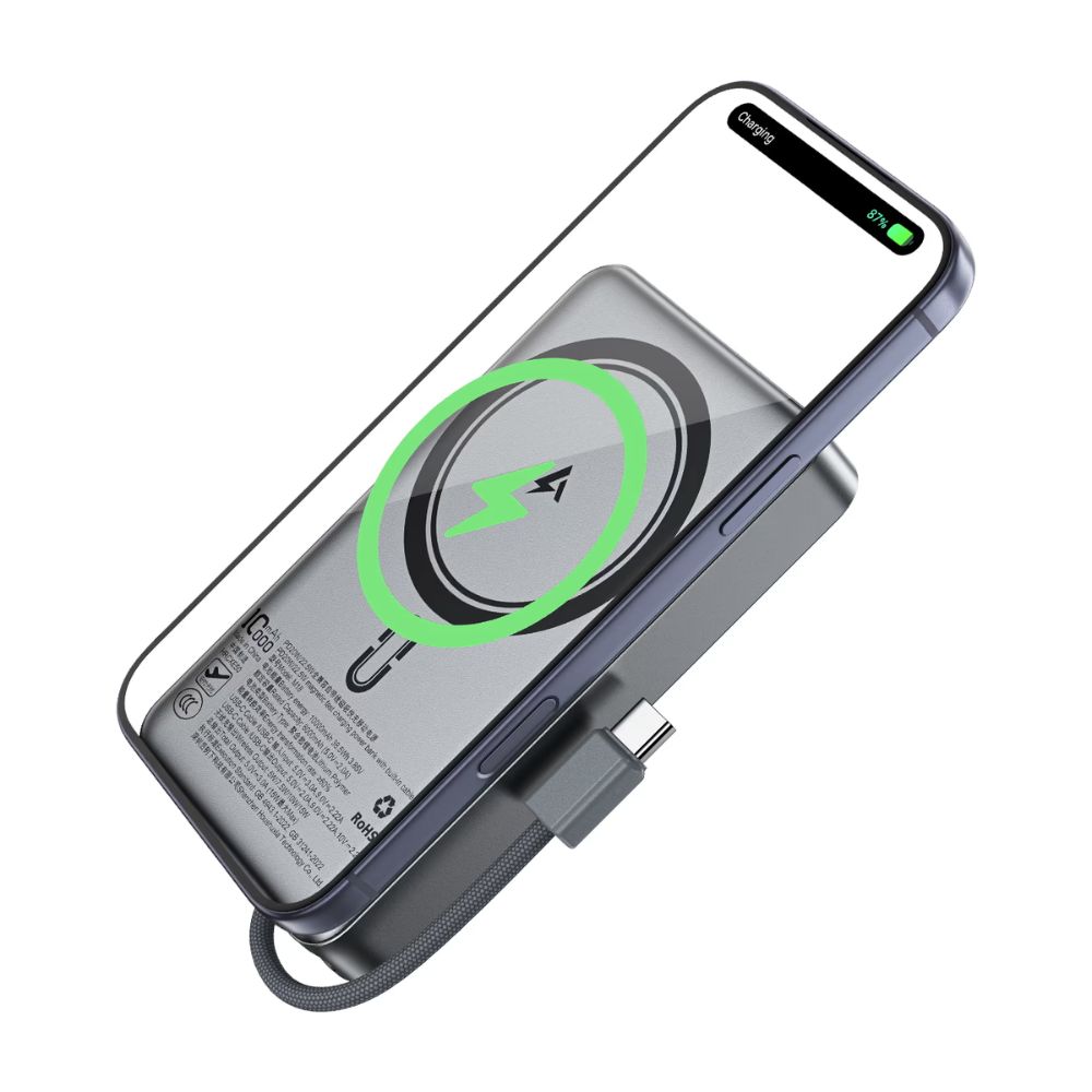 - Another standout feature of the ACEFAST M18 PD22.5W powerbank is its wireless charging support. Moreover,It delivers up to 15W wireless output, making it convenient for users who prefer cable-free charging. Moreover, the built-in USB-C fast charging cable supports both input and output, reducing the need to carry extra cables.