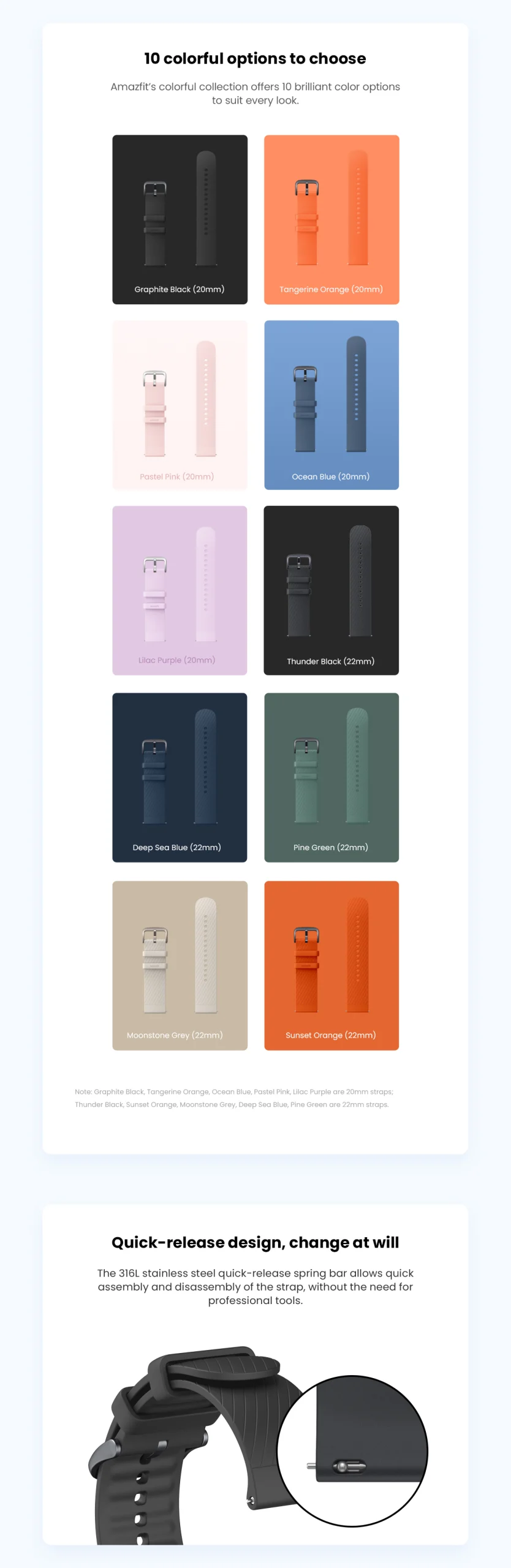 - Compatible Model: Amazfit Balance, Amazfit Cheetah Pro, Amazfit Cheetah Round, Amazfit GTR 4 Limited Edition, Amazfit Bip 5, Amazfit GTR 4, Amazfit GTR 3, Amazfit GTR 2, Amazfit GTR 2e, Amazfit GTR 47mm, Amazfit Stratos