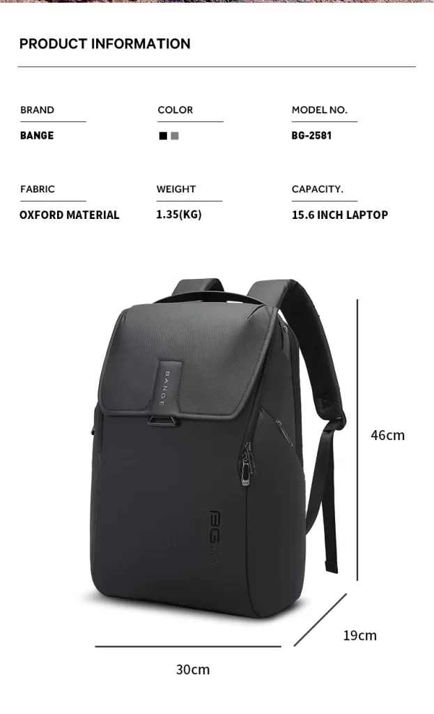Bange 2581 Premium Quality Anti Theft Backpack 15.6 Inch