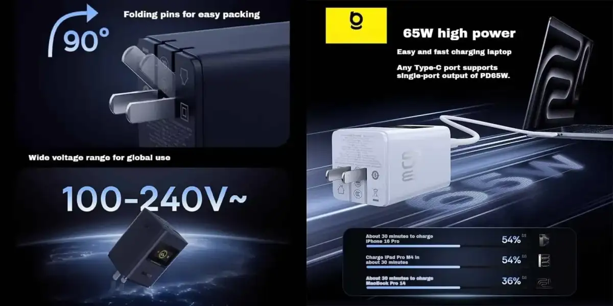 - The Baseus CCSPD65CC 65W Super GaN Digital Display Fast Charger is a powerful and compact wall charger designed for modern devices. Thanks to advanced GaN (Gallium Nitride) technology, it delivers stable and efficient 65W fast charging while keeping heat levels low. As a result, you can safely charge laptops, tablets, and smartphones without worrying about overheating or performance drops.