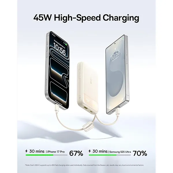 - When it comes to safety, the Baseus EnerFill FC11 20000mAh 45W offers a multi-protection system, including overcharge, overcurrent, short-circuit, and temperature control. Therefore, your devices remain safe during every charging session.
