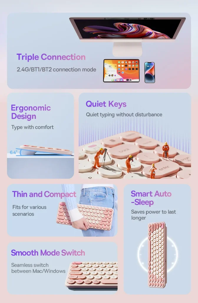 • The keyboard’s true magic lies in its ability to seamlessly switch between modes. With just a few clicks, you can effortlessly transition between iOS, macOS, and Windows modes, making it a breeze to operate across various devices. No more struggling with compatibility issues – this keyboard adapts to your needs.