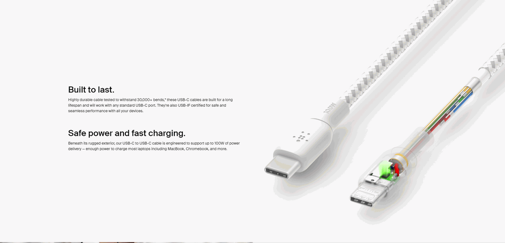 - Built to last: Highly durable cable tested to withstand 30,000+ bends,* these USB-C cables are built for a long lifespan and will work with any standard USB-C port. They’re also USB-IF certified for safe and seamless performance with all your devices.