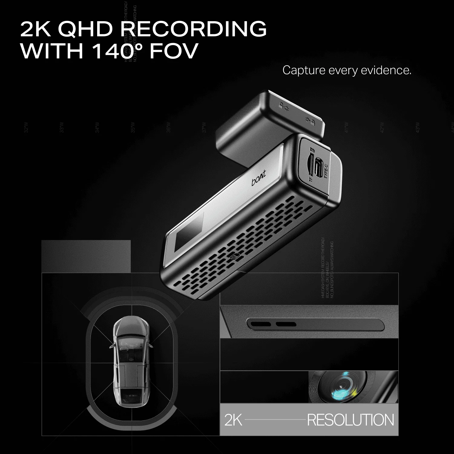 - First of all, the boAt HIVE DashcamM1 features 2K Real QHD (2560 × 1440P) video recording powered by a high-quality 4MP sensor. As a result, it captures crystal-clear footage of road signs, vehicles, and even license plates.