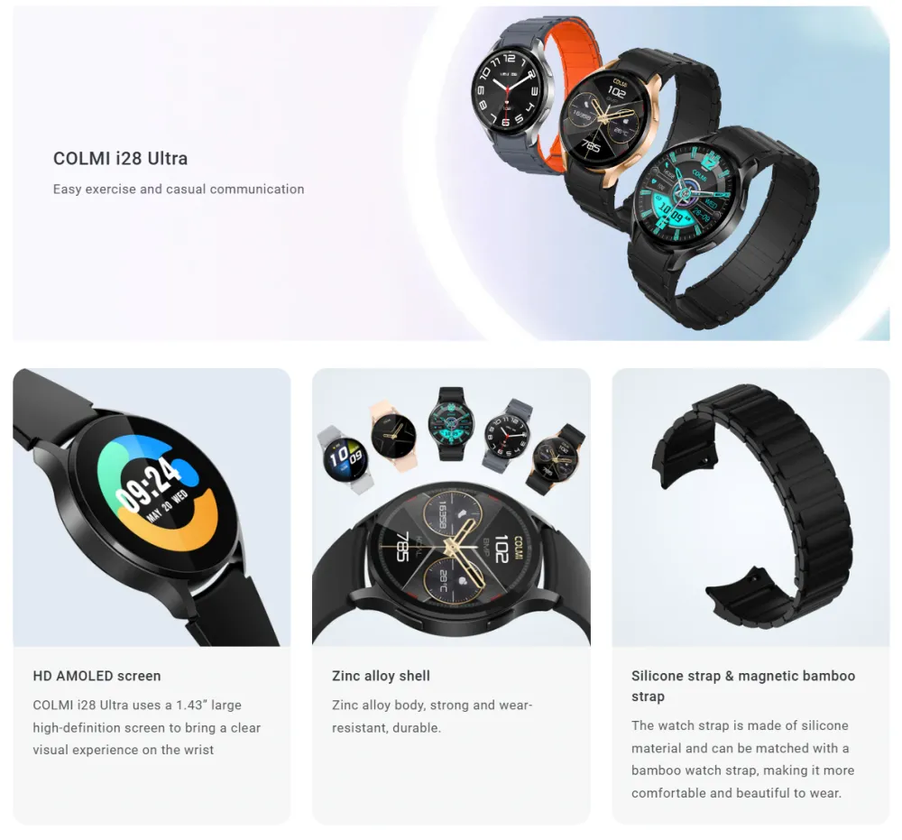 COLMI i28 Ultra 1.43″ AOD Display Smartwatch with Ai GPT Magnetic Silicon Strap