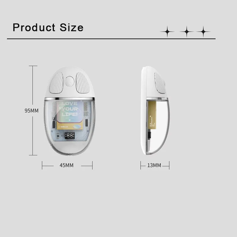 - Experience the convenience of a noiseless click, allowing you to concentrate on your work without worrying about disturbing others nearby. The mouse is equipped with a built-in 300mAh rechargeable battery, complete with a digital display indicating the remaining power. Say goodbye to constant battery replacements and stay focused on your tasks.