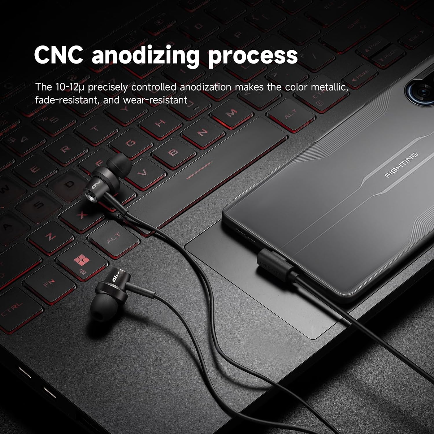• The earphones boast a trendy gradient color scheme achieved through a double anodization process. The precisely controlled anodization renders the colors metallic, fade-resistant, and wear-resistant, adding a touch of style to the gaming experience.