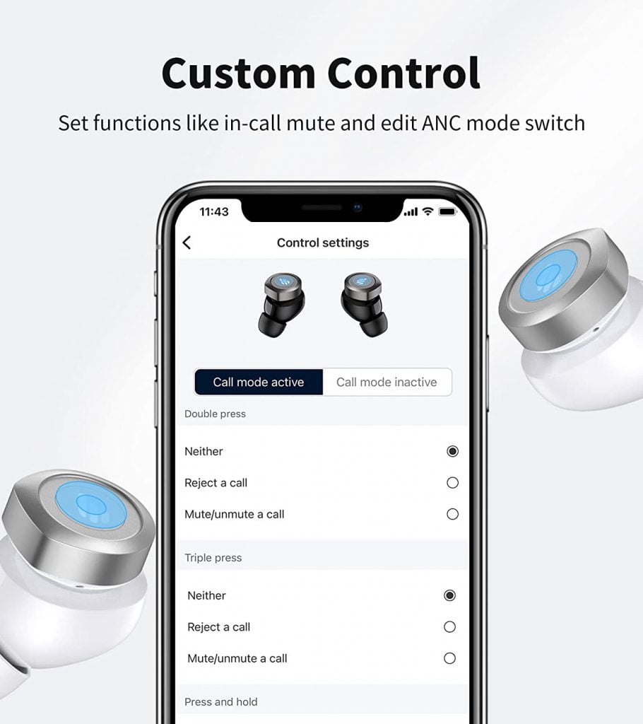 - EQ Mode: Choose Classic for the pure sound, Dynamic for enhanced sound with added depth, or Customized for one of your own personalized sound signatures.