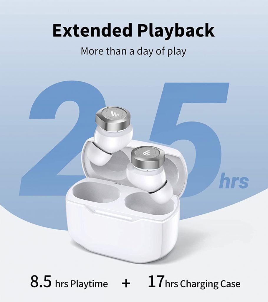 - Extended Playtime: The earbuds provide over 8 hours of high-quality music (or 7 hours with ANC on). Total playtime is around 25 hours with the charging case (or 21 with ANC on).