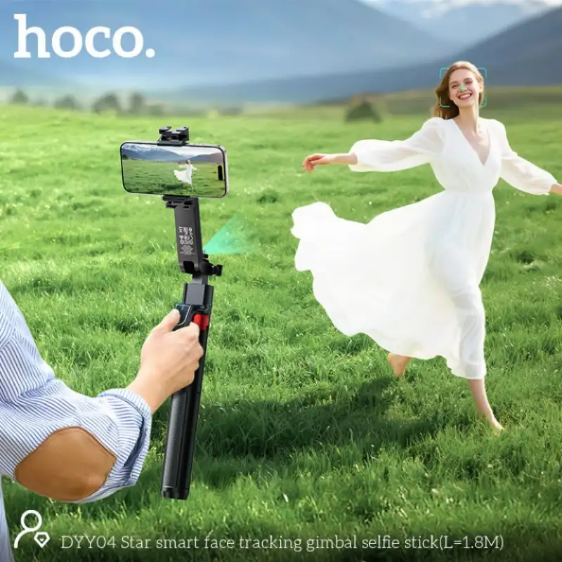 - Upgrade your content creation game with the Hoco DYY04, an intelligent selfie stick and gimbal designed to follow your every move. Whether you’re recording vlogs, making video calls, or streaming live on social media, this smart device ensures smooth, hands-free operation with advanced AI face tracking and 360° rotation.