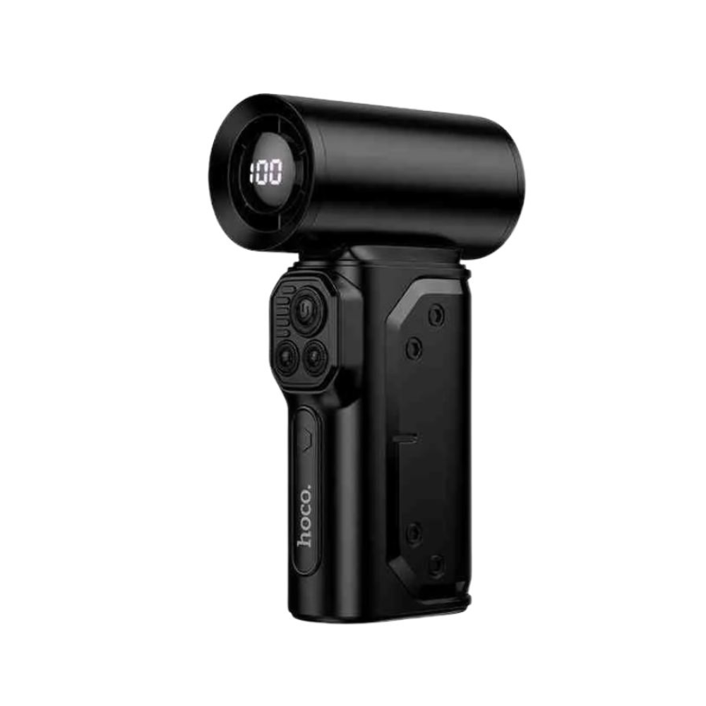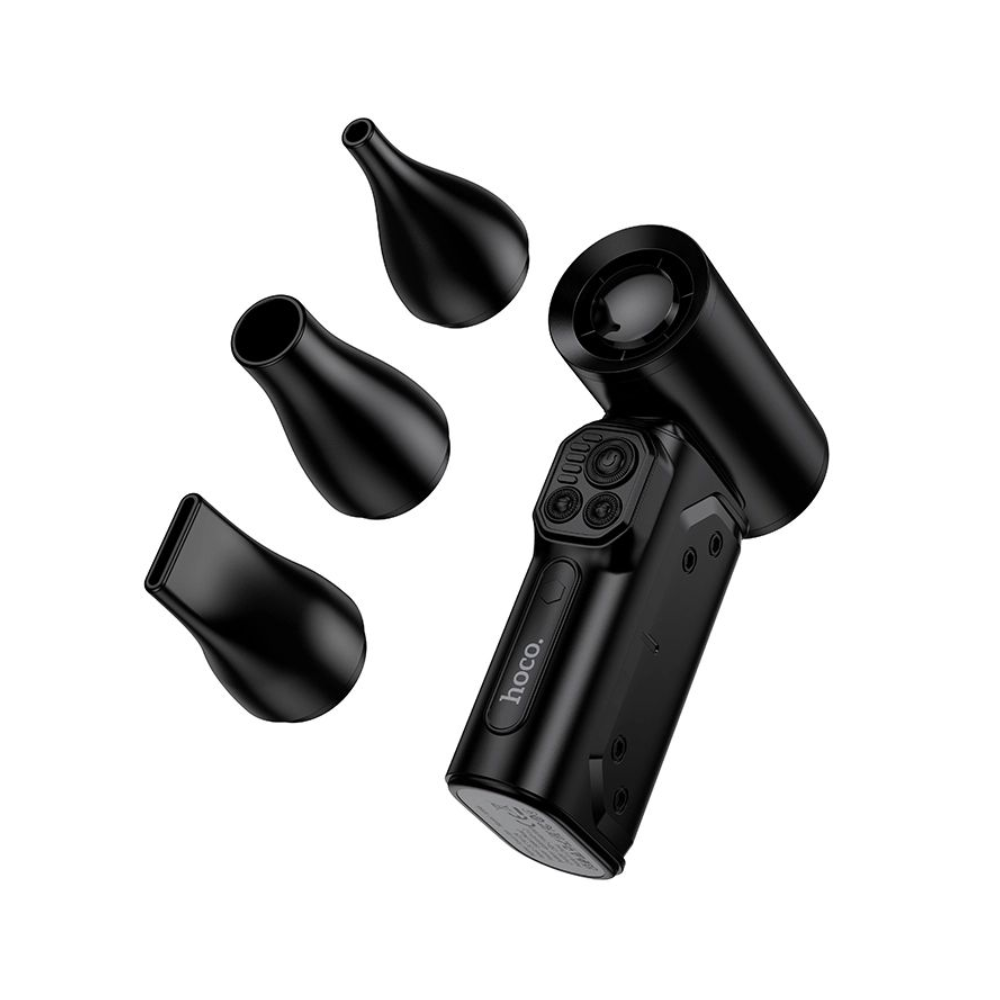 • The Hoco HX68 Flujo Ultra High SpeedFan is a powerful and professional-grade cleaning tool designed for users who need extreme airflow performance. With an ultra-high-speed motor that reaches up to 130,000 RPM, this device delivers a concentrated burst of air strong enough to remove dust instantly. Whether you are cleaning PC components, car interiors, keyboards, vents, or any hard-to-reach area, the HX68 ensures unmatched efficiency and accuracy.