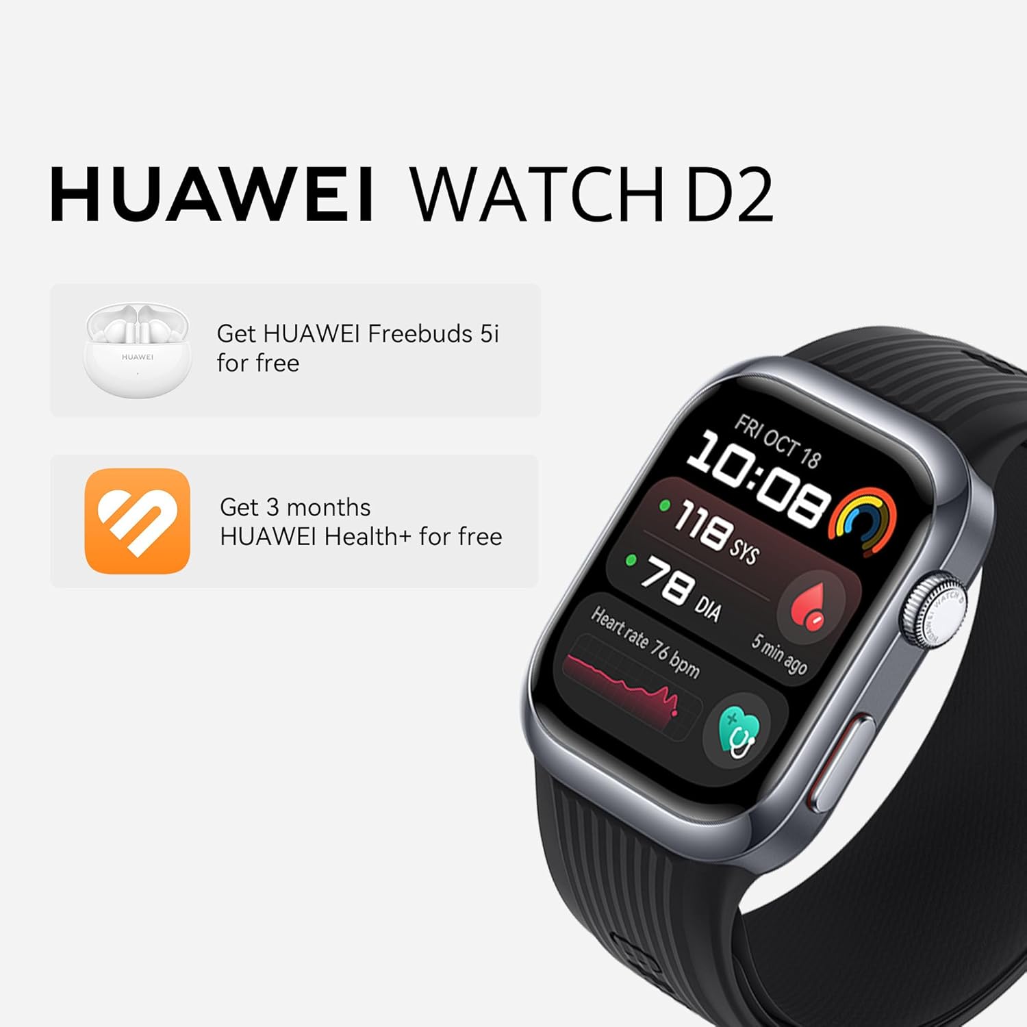 - The Watch D2 also offers real-time ECG analysis. Thanks to its advanced electrode technology, you can screen for heart conditions in just 30 seconds by touching the side electrode. This makes it a reliable partner in preventive health care.