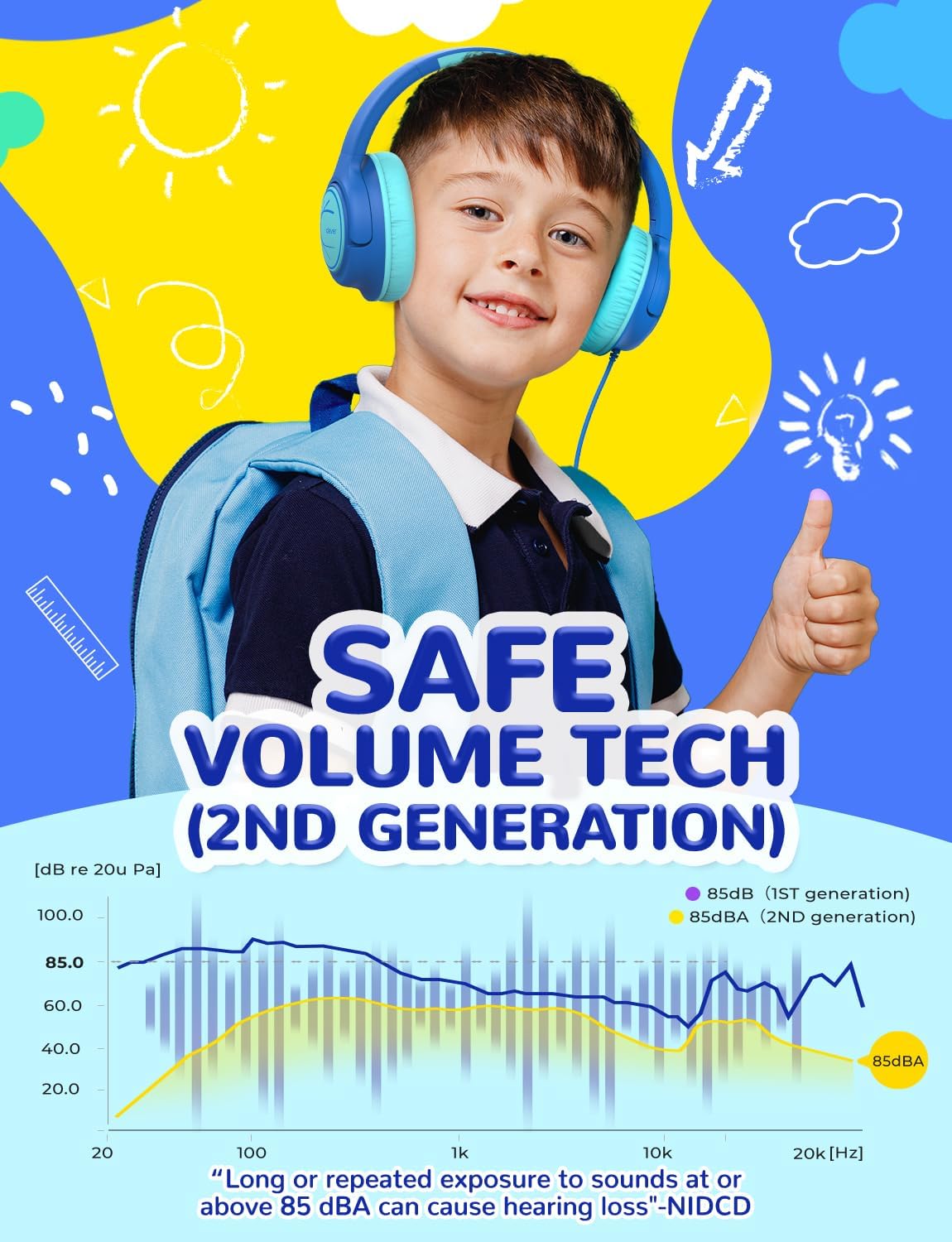 Looking for a pair of headphones that prioritizes both exceptional sound quality and safe listening for your child? Look no further than the iClever H26 Kids Wired Headphones. Designed with your child’s well-being in mind, these headphones offer a winning combination of features that make them perfect for learning, entertainment, and everything in between. - Safe Listening for Young Ears:A major concern for parents is protecting their children’s hearing. The iClever H26 prioritizes this with its 2nd generation 85dBA safe volume limit technology. This innovative feature adheres to CDC recommendations, ensuring your child can enjoy extended listening sessions without exceeding safe noise levels. Whether they’re engrossed in audiobooks, jamming to their favorite tunes, or attending online classes, the iClever H26 creates a healthy listening environment for their developing ears.