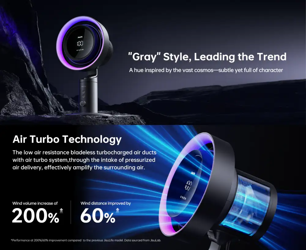 • The Jisulife Table Fan Pro3 offers a premium cooling experience with advanced features and a sleek finish. Built for flexibility and comfort, this fan combines a turbo desk fan, air circulator, and ambient light in one compact device.
