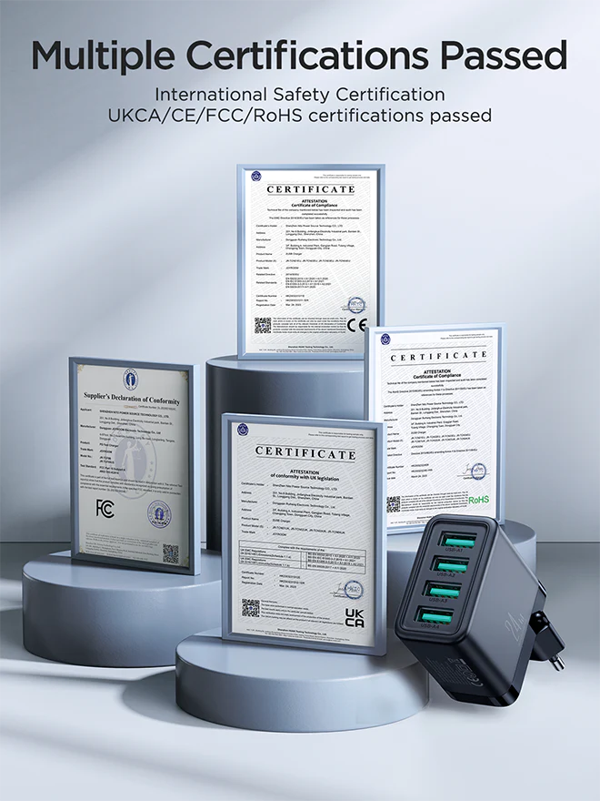 - Safety is paramount, and the Joyroom charger prioritizes this with multiple protection mechanisms. From over-current and over-voltage protection to short-circuit and over-temperature safeguards, every aspect of the charging process is meticulously monitored to guarantee user safety. With certifications such as UKCA, CE, RoHS, and FCC, the JR-TCN03 series adheres to international standards, providing peace of mind to users concerned about the safety of their devices.