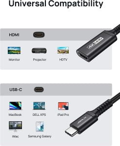 - USB C to HDMI Adapter: Offering 4K resolutions up to 3840×2160 at 30Hz. JSAUX USB-C to HDMI Adapter delivers clean, vivid, seamless videos.