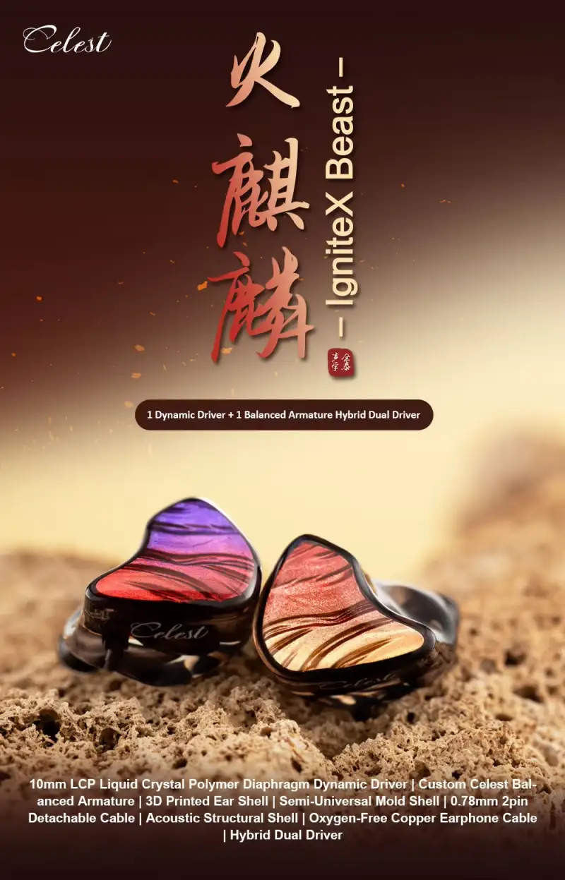 - Unleash your music experience with the Kinera Celest IgniteXBeast, a hybrid dual-driver in-ear monitor (IEM) inspired by Chinese folklore. Its semi-transparent black resin shell features flame-inspired gradient textures, offering an aesthetic that’s both bold and sophisticated.
