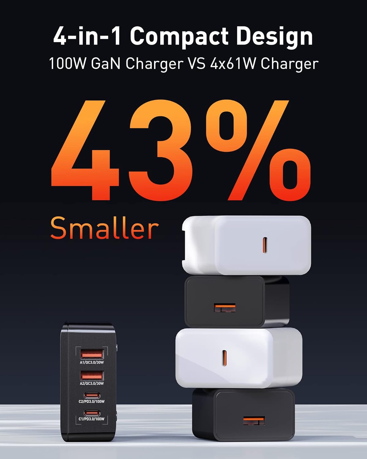 • Moreover, the LDNIO 100W GaN charger incorporates cutting-edge GaN technology, making it 43% smaller than traditional chargers while delivering superior performance. Its compact size, travel-friendly design, and worldwide voltage compatibility make it the perfect companion for both home and travel use. Plus, with built-in safety features such as intelligent temperature monitoring and dynamic power output adjustment, you can rest assured that your devices are receiving fast and secure charging every time.