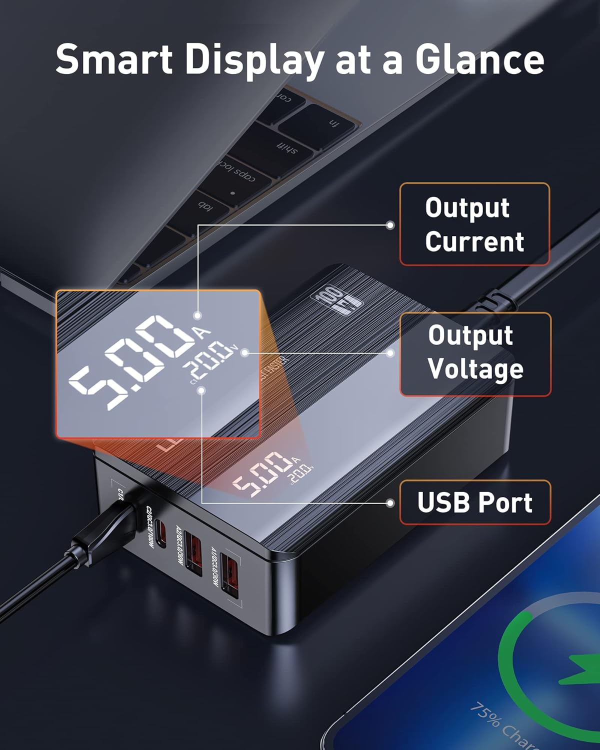 • Introducing the LDNIO 100W GaN Super Fast Desktop Charger, a cutting-edge solution for all your charging needs. This advanced charger boasts a 100W Power Delivery (PD) output, accompanied by an innovative LED display that provides real-time updates on amperage and voltage, ensuring you’re always in the know about your device’s charging status. Whether you’re charging a 16″ MacBook Pro in just 1.8 hours or juicing up an iPhone 14 Pro to 50% in just 30 minutes, this charger delivers exceptional speed and efficiency.