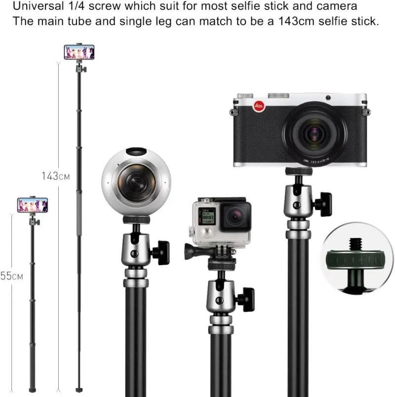 - Two-in-One Camera Tripod: the camera tripod can be converted to a monopod by screwing together the tripod tube and the center axis, the selfie stick length can be 55cm to 143cm. So you can use it either as a tripod or a monopod for your DSLR, video cameras, digital cameras, GoPro devices, etc