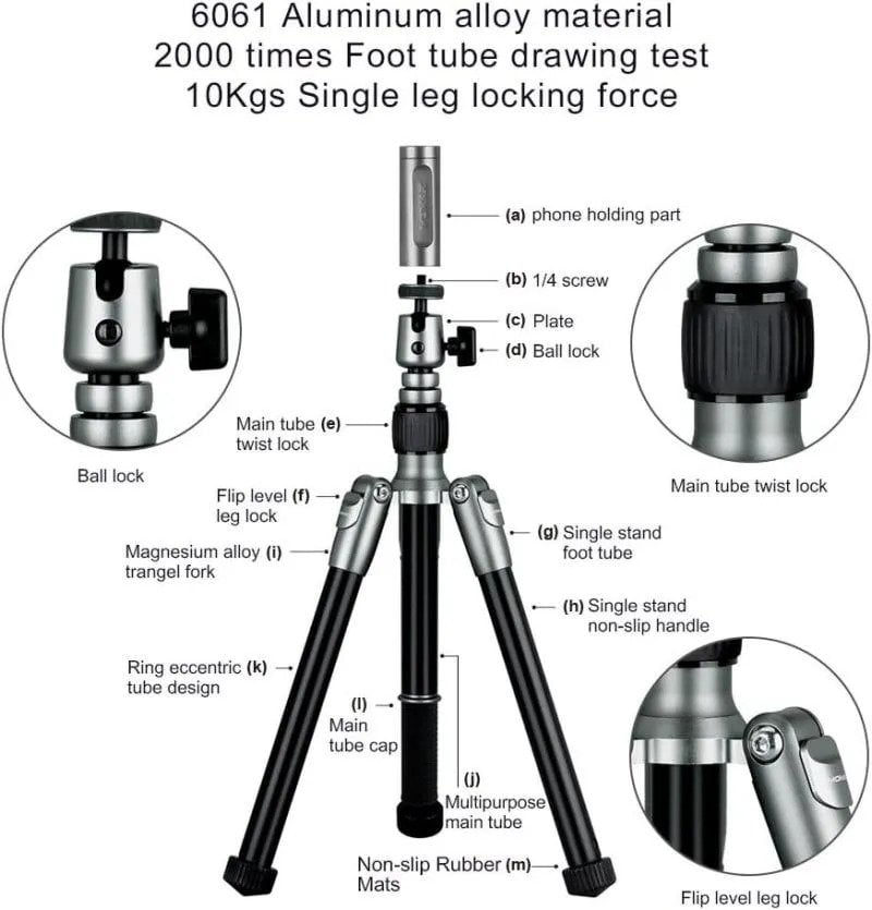 - With Phone Grip and Ball Head: Not only for your professional cameras but also for your phones, the phone grip design suit for the 5.7-9.2CM width smartphones