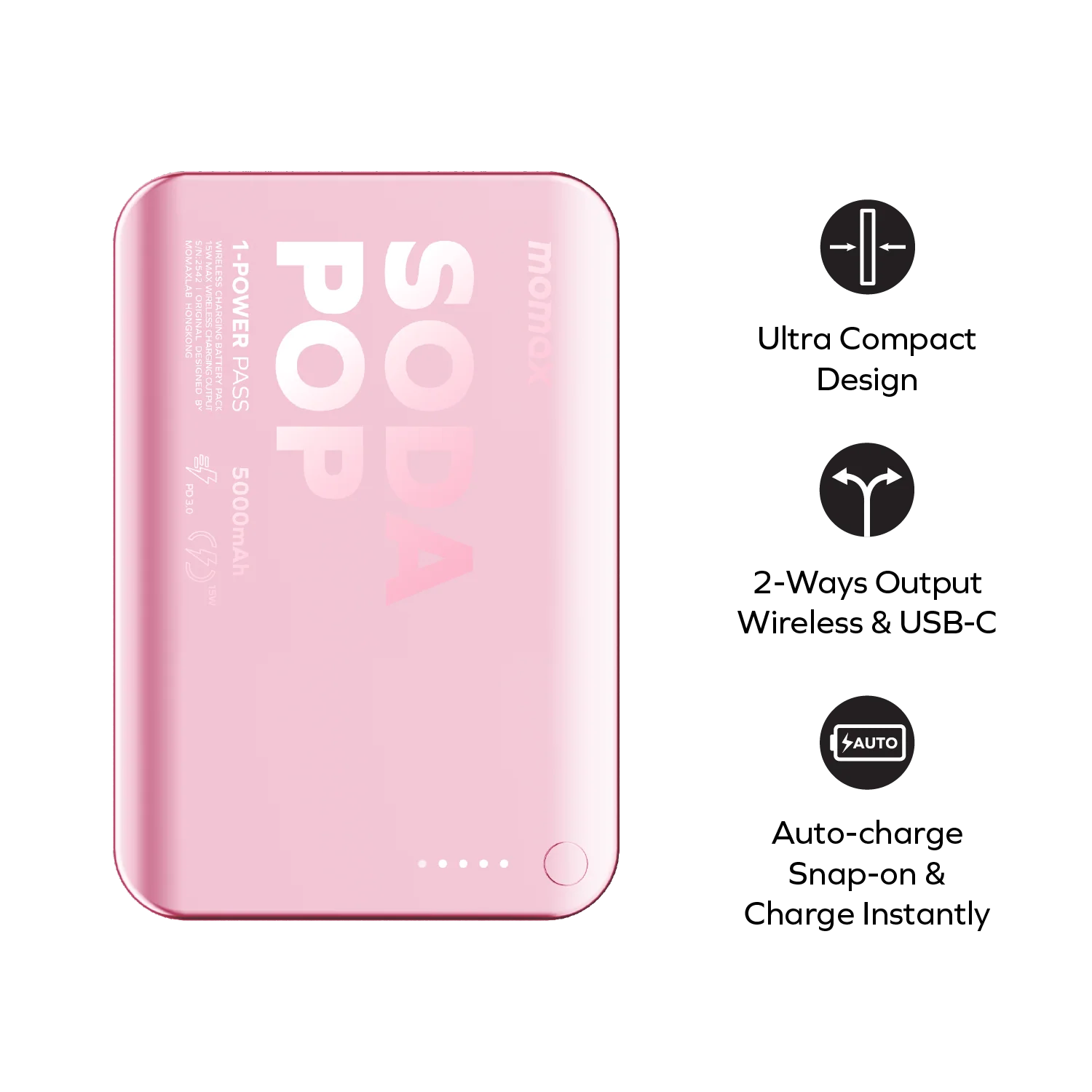 - One of the standout features of the Momax 1-PowerPass 5000mAh is its strong magnetic attachment. It snaps securely onto compatible devices and starts charging instantly without requiring cables or manual alignment. As a result, you get effortless power whenever you need it, whether you are traveling, working, or commuting.
