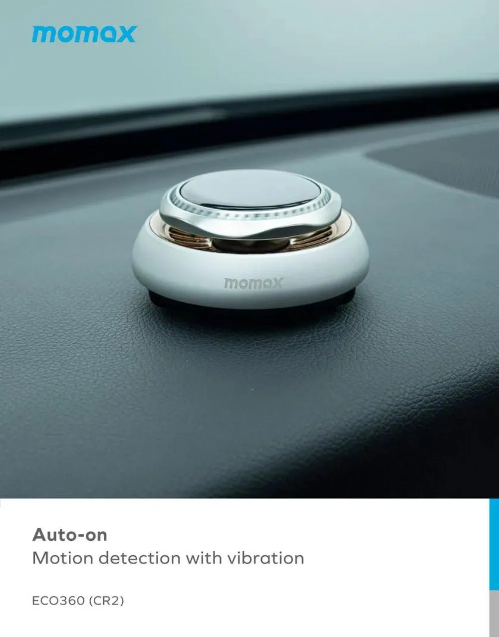 - Introducing the Momax Eco360 Solar Car Aroma Diffuser (CR2), a revolutionary product that seamlessly blends environmental consciousness with practicality. Harnessing the power of solar energy, this diffuser operates effortlessly, eliminating the need for charging and embracing eco-friendly functionality. Crafted from exquisite beech wood, each unit is infused with exclusive aromatherapy oil, actively emitting a delightful fragrance into your car’s interior.