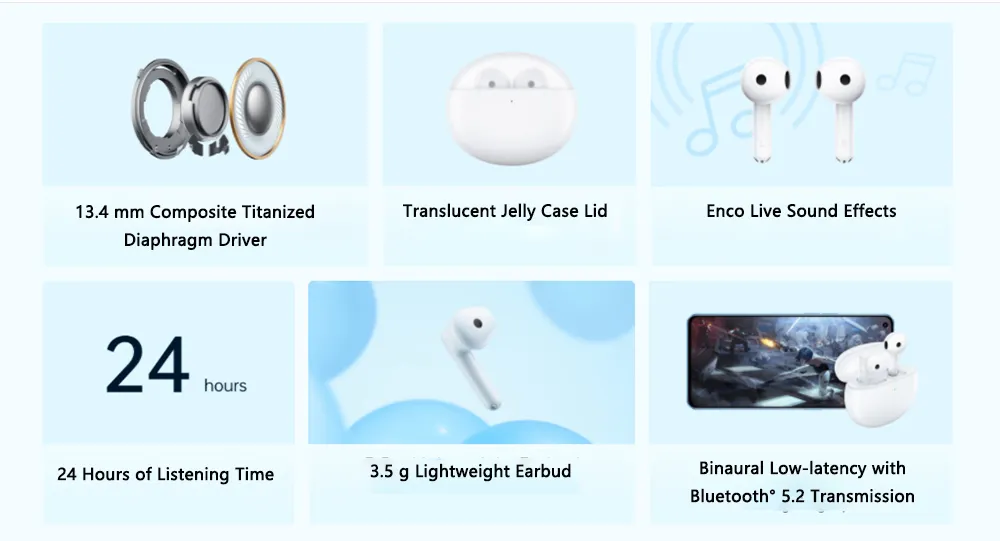 - Embracing the latest Bluetooth technology, the Enco Air2 boasts Bluetooth version 5.2, extending a wireless range of up to 10 meters. This advanced connectivity enhances user convenience, allowing seamless pairing and uninterrupted audio transmission.