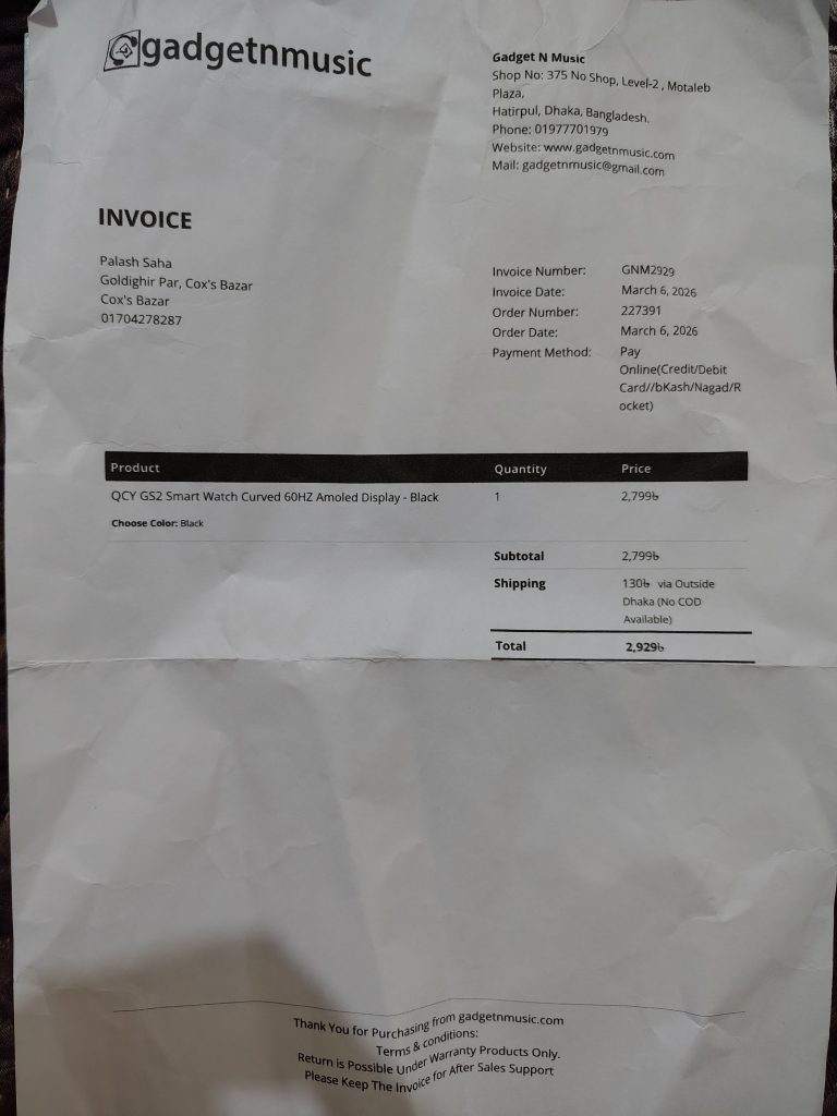 - ওয়ারেন্টি ক্লেইম এর জন্য প্রোডাক্ট আমাদের শপে নিয়ে আসতে হবে ক্যাশ মেমো, প্রোডাক্ট প্যাকিজিং সহ। অথবা ডেলিভারি ম্যান দিয়ে পাঠাতে পারবে এখেত্রে আসা-যাওয়ার ডেলিভারি চার্জ কাস্টমারকে বহন করতে হবে।