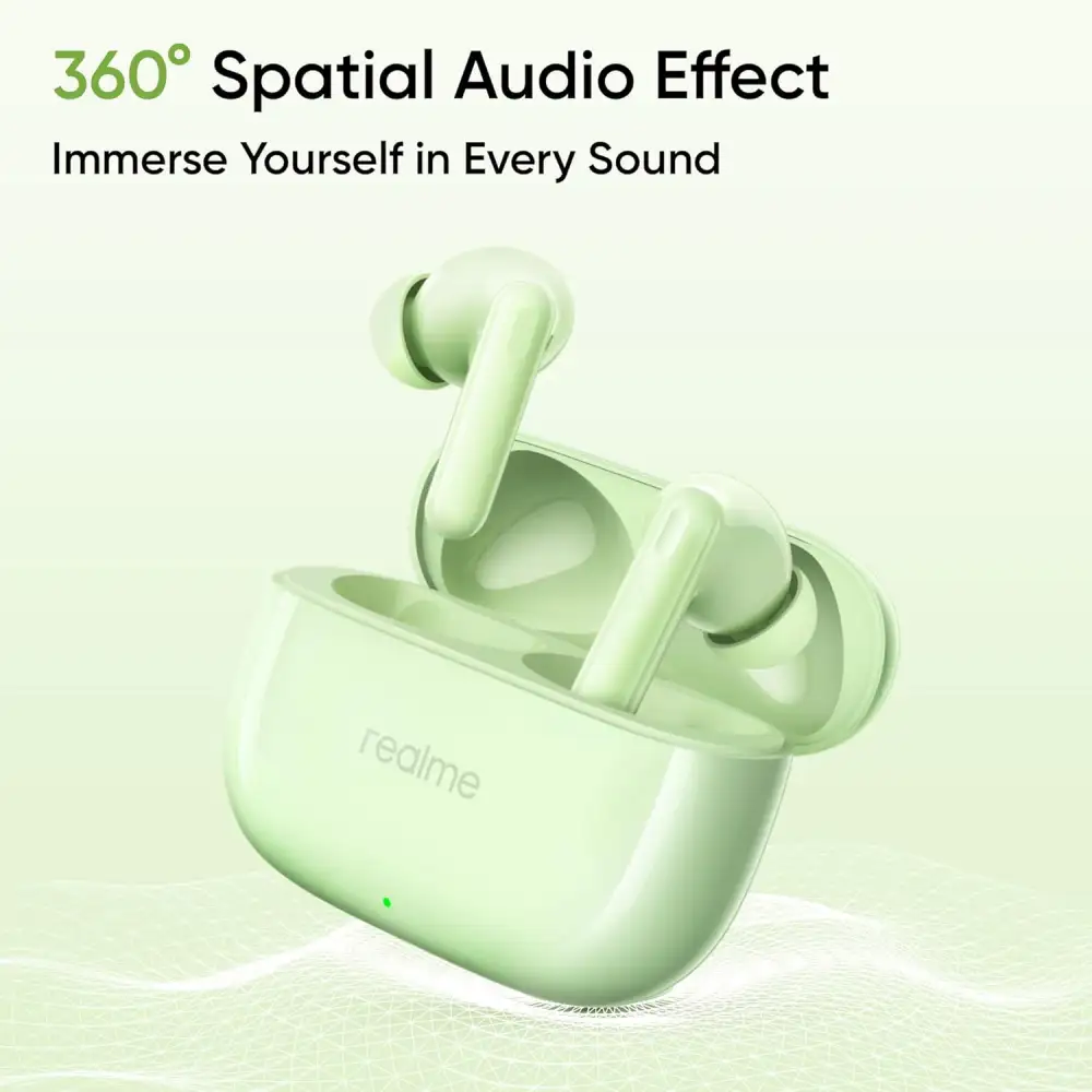 • Equipped with 10mm dynamic bass boost drivers, the RealmeBuds N1 produces rich, deep bass and detailed audio. Whether you’re gaming, watching movies, or relaxing to music, every beat feels alive. Moreover, the dual AI ENC microphones ensure crystal-clear calls by filtering out background noise, so your voice sounds natural and clear even in noisy environments.