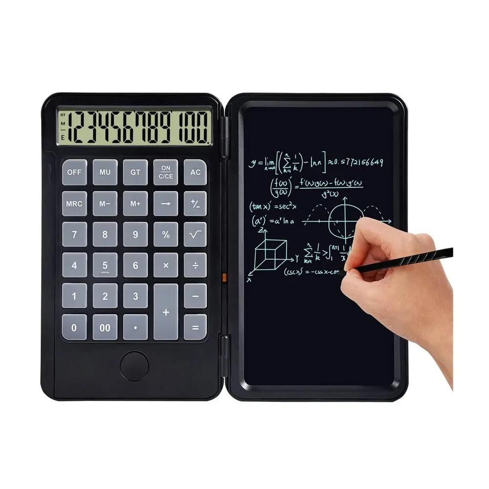 - Introducing the Rechargeable Calculator with a 6.5-inch LCD Notepad Pen – a versatile and innovative device designed to streamline your daily tasks. This calculator features a unique flipper cover design that seamlessly integrates a scientific calculator with a 6.5-inch writing tablet, revolutionizing traditional calculator usage.