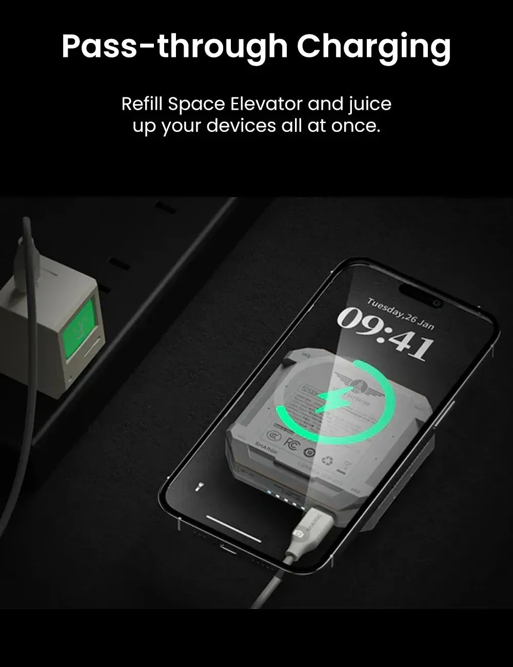 - Experience flexibility in charging with 20W Max USB-C capabilities, accommodating both magnetic and cable charging for your USB-C devices. With pass-through charging, replenish the Space Elevator’s power while simultaneously charging your devices. Safety is paramount, with top-tier protection against over-voltage, over-temperature, short-circuits, and over-charge/discharge, making it airline-safe. Crafted with a V0-grade fire-proof PC case, the power bank enhances charging safety.