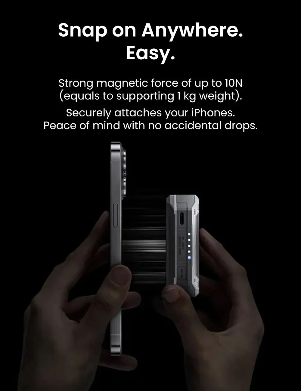 - Designed for unparalleled portability, this power bank boasts miniaturized dimensions at 70×70mm (2.75×2.75″), smaller than a credit card. Free yourself from battery anxiety with a robust 5,200mAh battery, ensuring you stay powered throughout your day, whether gaming, binge-watching, or working on the go. The magnetic design, featuring a strong force of up to 10N, securely attaches to your iPhones, offering peace of mind against accidental drops.