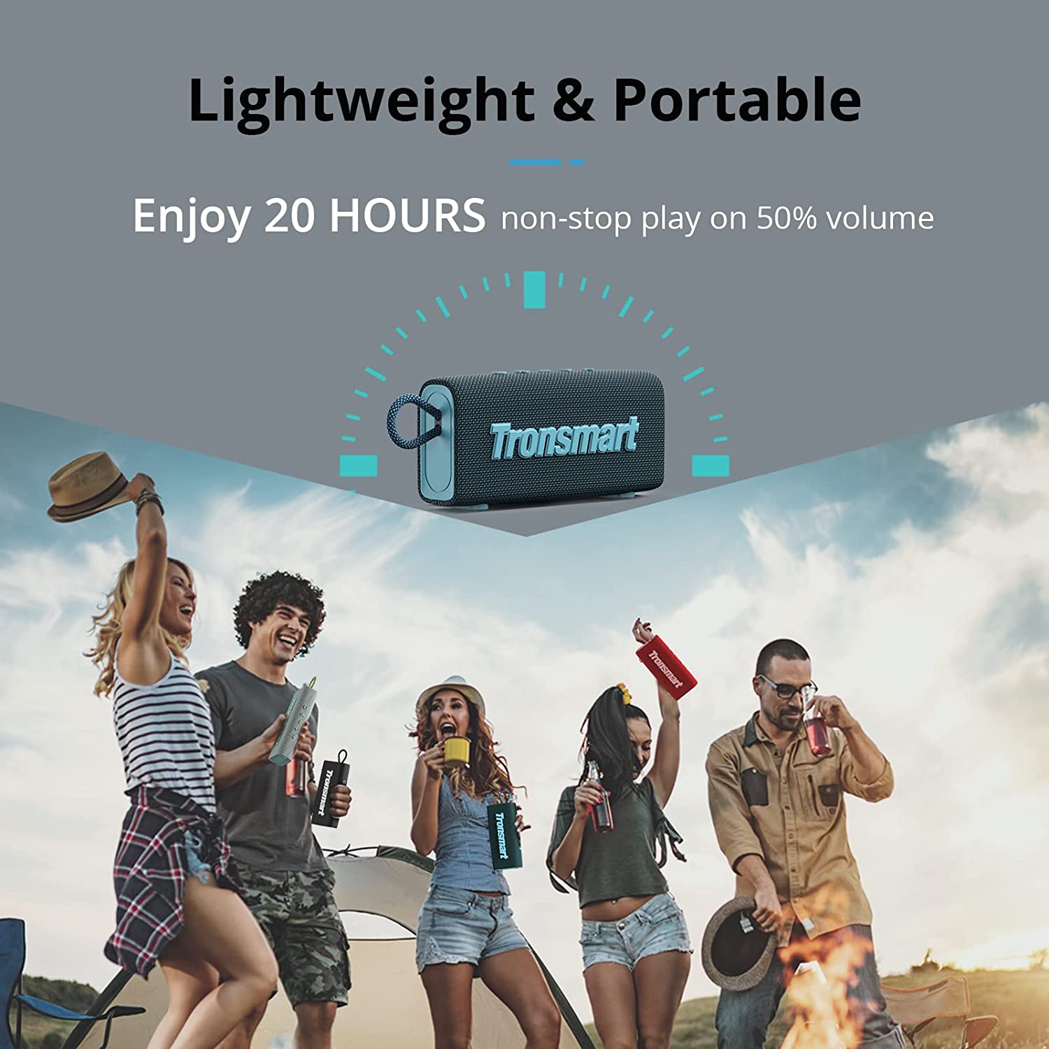 • Up to 20 HOURS of PLAYTIME: Built-in li-ion 2000mAh rechargeable battery, Tronsmart Trip Waterproof Bluetooth Speaker guarantees up to 20 hours of playtime at 50% volume. Charge time: within 3 hours. Enjoy music day & night.