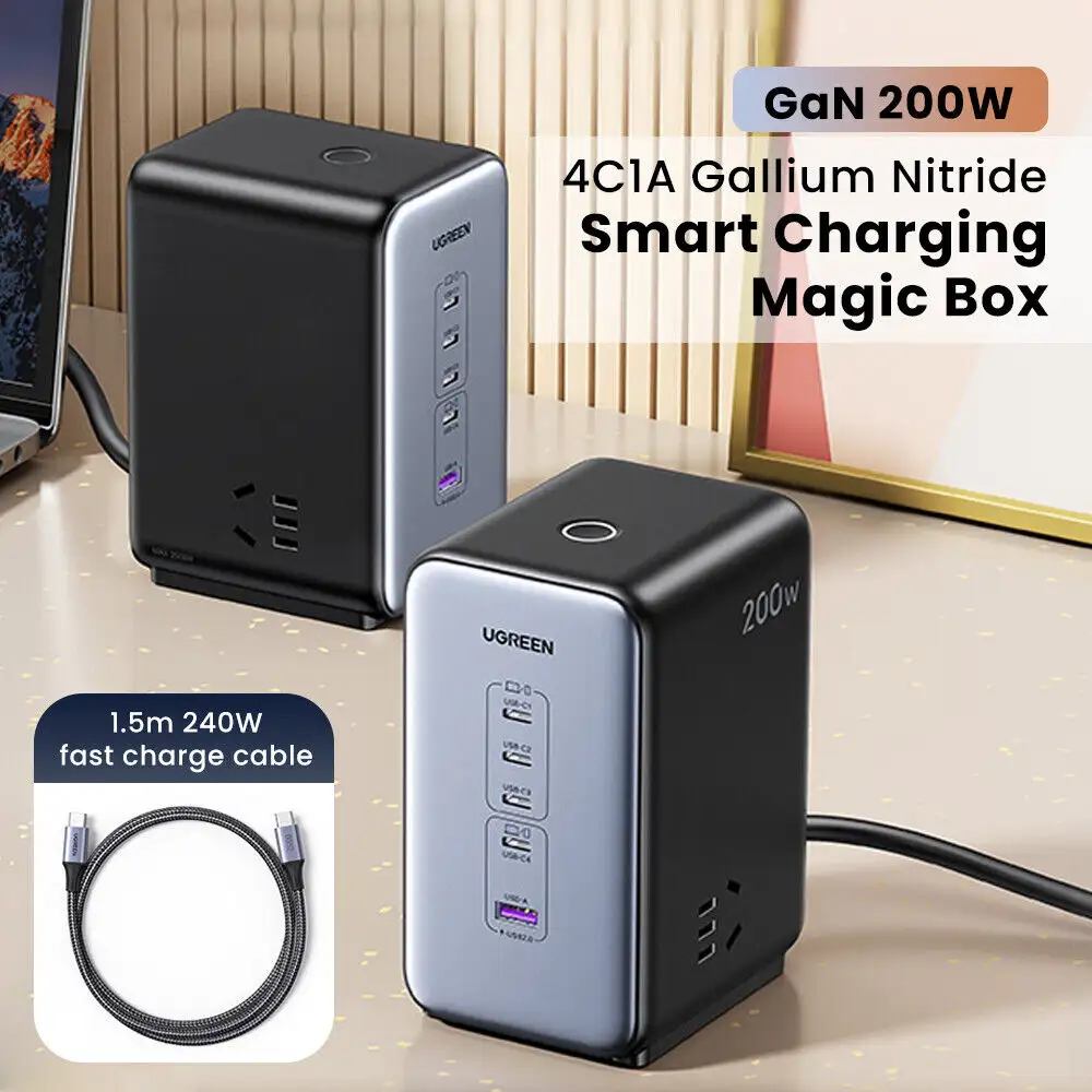- The UGREEN S780 is a high-power 200W GaN charging station, designed to fast-charge multiple devices simultaneously. With 4 USB-C ports, 1 USB-A port, and 2 AC outlets, this 7-in-1 power hub is perfect for laptops, smartphones, tablets, and more.