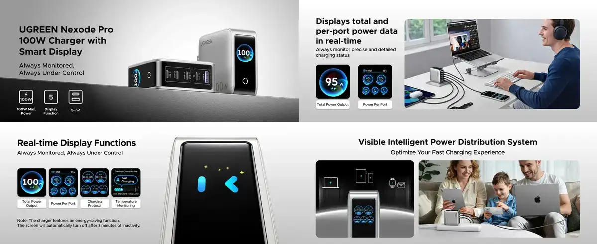 Buy UGREEN X773 Nexode Pro 100W 5-Port Smart Display GaN Charger Online At the Best Price In Bangladesh At Gadgetnmusic.com