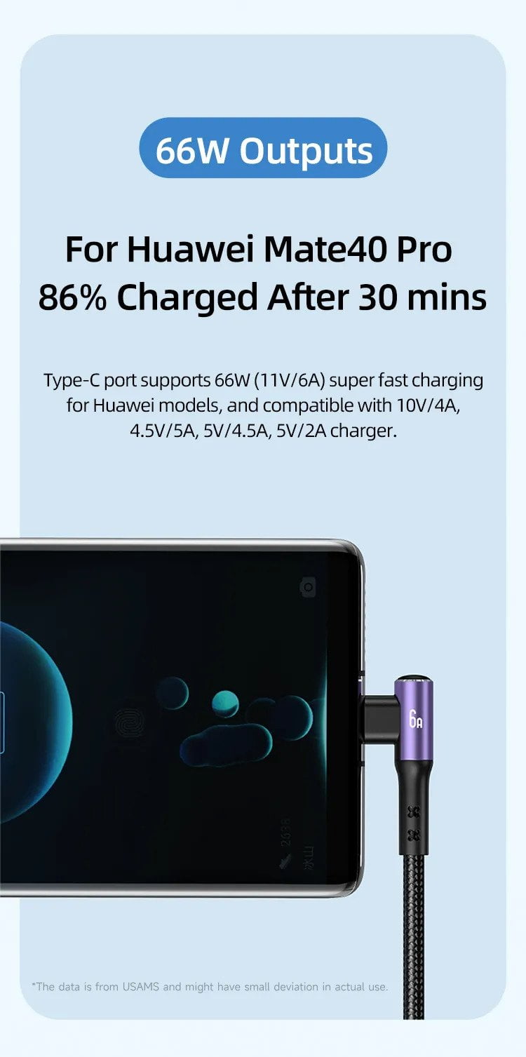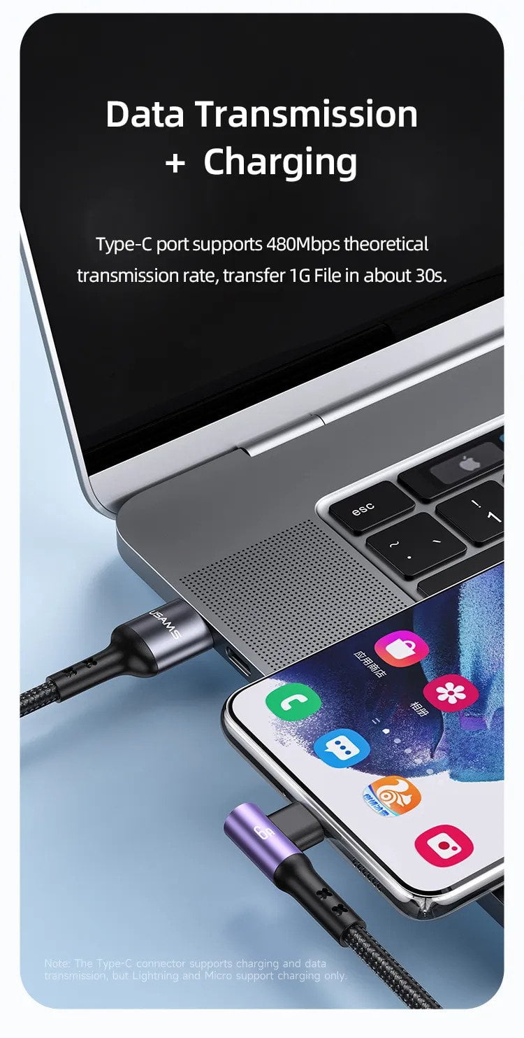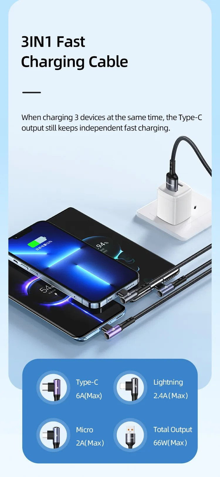 Buy USAMS US-SJ561 U80 3IN1 Right-angle 66W Fast Charging & Data Cable Online At the Best Price In Bangladesh At Gadgetnmusic.com