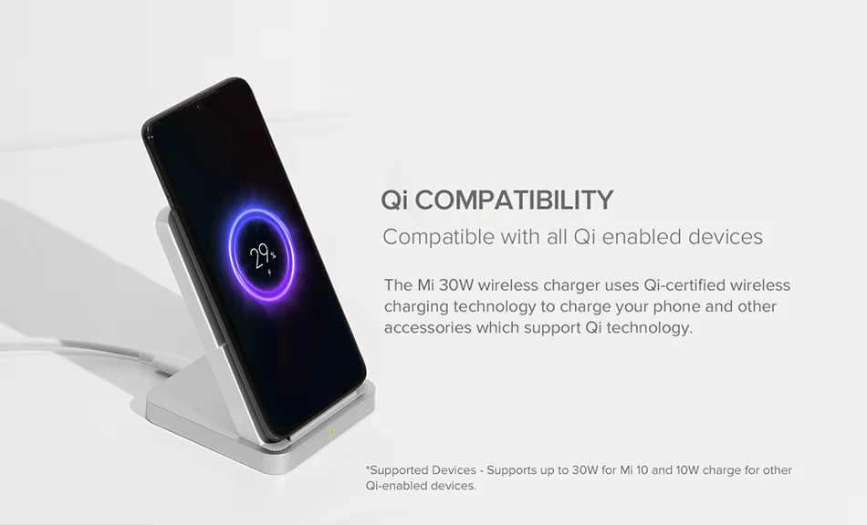 - The Xiaomi 30W Vertical Wireless Charger is an innovative charging solution that combines speed, convenience, and safety in a sleek package. With its 30W fast charging capability, it provides a significant power boost to your devices, ensuring they are ready to go in no time. Whether you’re rushing out the door or simply need a quick top-up, this charger has you covered.