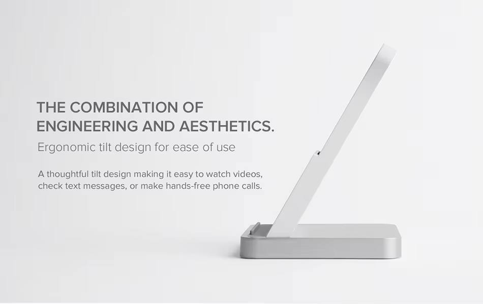 - Moreover, its vertical double coil design is exceptionally versatile, allowing you to charge your phone in either horizontal or vertical orientations. This means you can keep your device upright for easy access or lay it down when preferred. Additionally, the ergonomic tilt feature, often referred to as a “kickstand” design, positions your phone at an ideal viewing angle. As a result, you can comfortably watch videos, participate in video calls, or browse the web without interrupting the charging process.