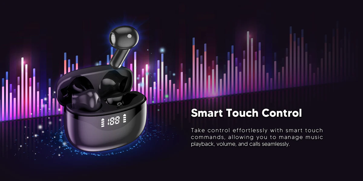 - Adding to their appeal is the convenience of Smart Touch Control, allowing seamless management of music playback and calls with just a tap. Say goodbye to fumbling with buttons – with these touch-sensitive controls, you can effortlessly navigate your audio experience with precision and ease. Additionally, the IPX5 waterproof rating ensures that the earbuds can withstand sweat, rain, and splashes, making them ideal for active lifestyles and workouts.
