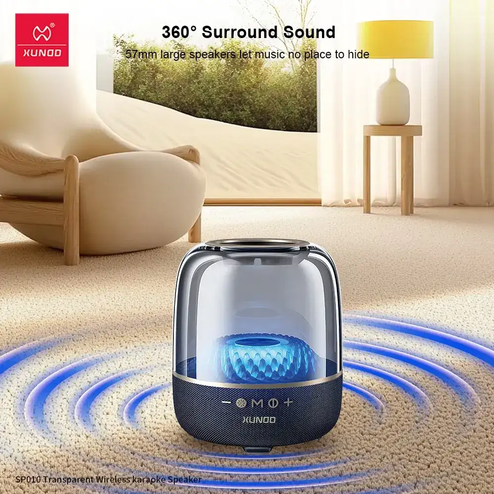 - The XUNDD SP010 Transparent Wireless Karaoke Speaker is designed for users who want powerful sound, stylish looks, and fun karaoke features in one compact device. Whether you are hosting a party, enjoying music outdoors, or practicing singing at home, this speaker delivers a complete entertainment experience. With its modern transparent body and colorful RGB lighting, it instantly becomes the center of attention.