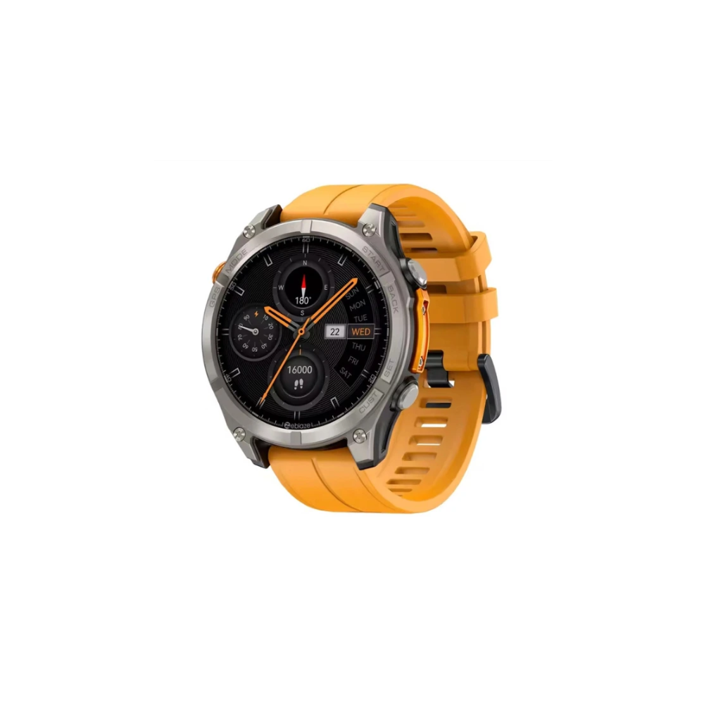 - The smartwatch also supports Bluetooth calling and includes an offline voice assistant, allowing hands-free interaction. For health and fitness monitoring, it offers 24/7 heart rate tracking, blood oxygen (SpO2) measurement, sleep monitoring, stress tracking, and more. With 170+ sports modes, it supports everything from daily workouts to pool and open-water swimming (rated 5 ATM & IP69K).
